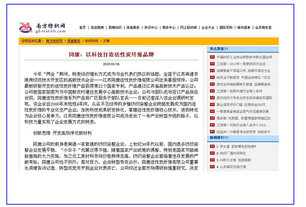 南方紡織網、白馬服裝網——同康:以科技打造活性碳纖維品牌
