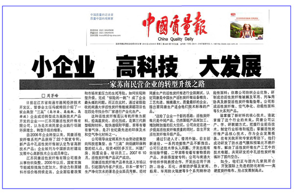 中國質(zhì)量報(bào)——小企業(yè)、高科技、大發(fā)展"一家蘇南民營企業(yè)的轉(zhuǎn)型升級路"