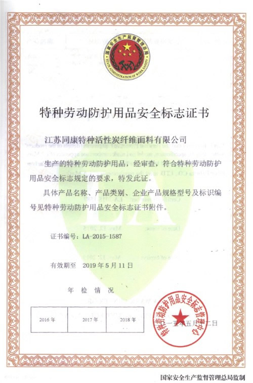 我公司生產(chǎn)的KN95口罩通過了特種勞動防護用品安全管理中心的嚴格審核,并獲得特種勞動防護用品安全標志證書。