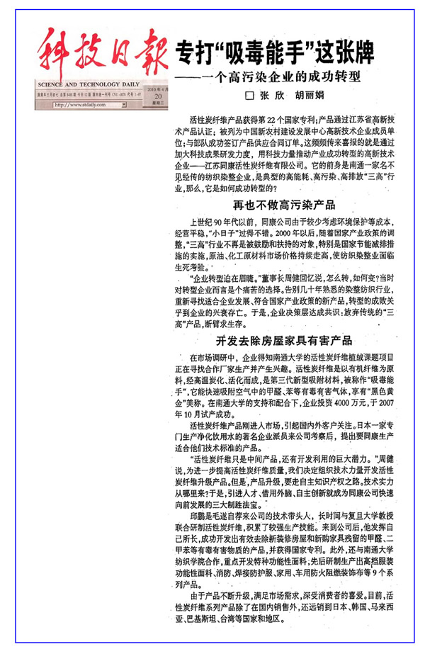 科技日?qǐng)?bào)——專(zhuān)打“吸毒能手”這張牌——一個(gè)高污染企業(yè)的成功轉(zhuǎn)型