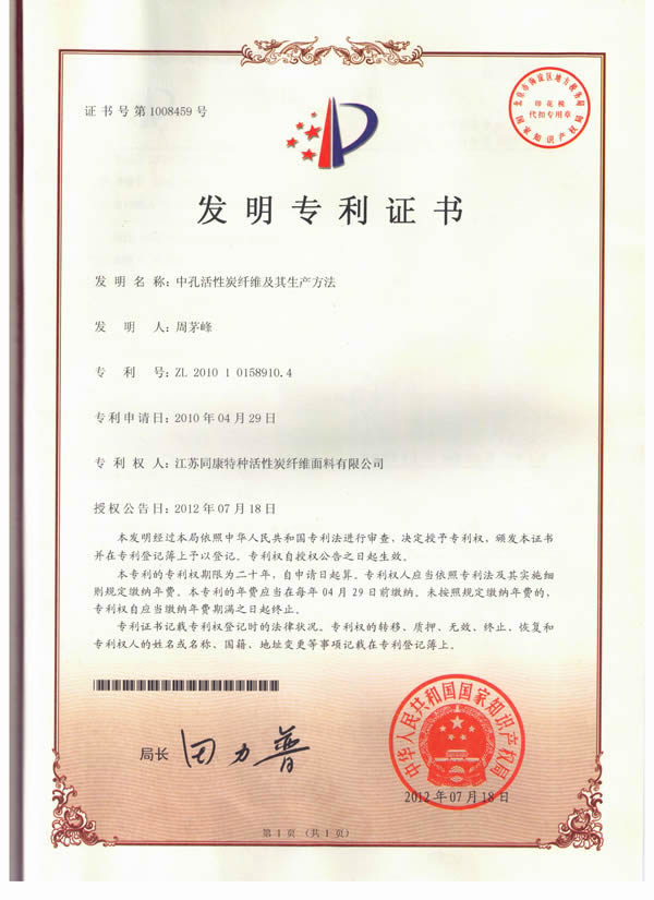 2012年同康公司取得可喜科研成果,獲得發明專利2項。目前,同康公司總取得23項專利,其中發明專利2項,實用新型專利21項。
